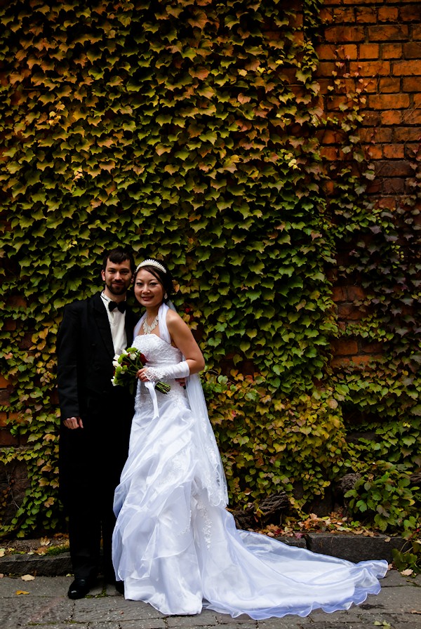 Posing in front of the ivy covered walls of the city hall.